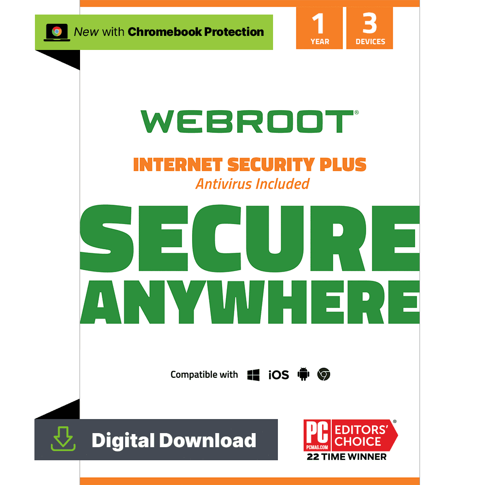 Webroot Internet Security Plus with Antivirus Protection for 3 Devices, 1-Year Subscription